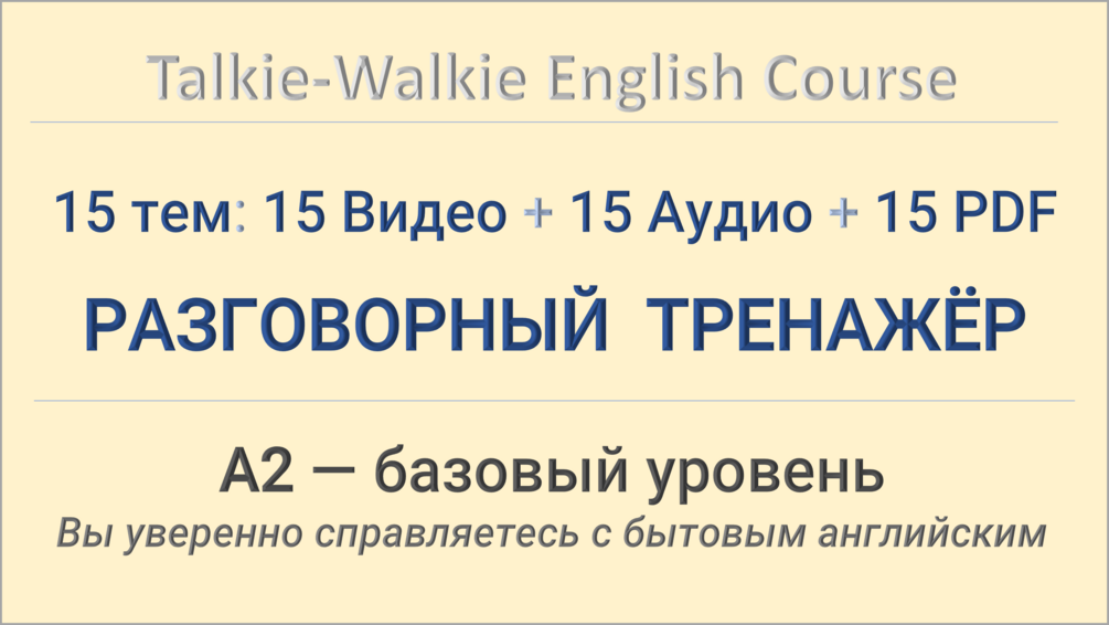 Пакет из 15 видео, аудио и PDF-файлов для тренировки разговорного английского A2